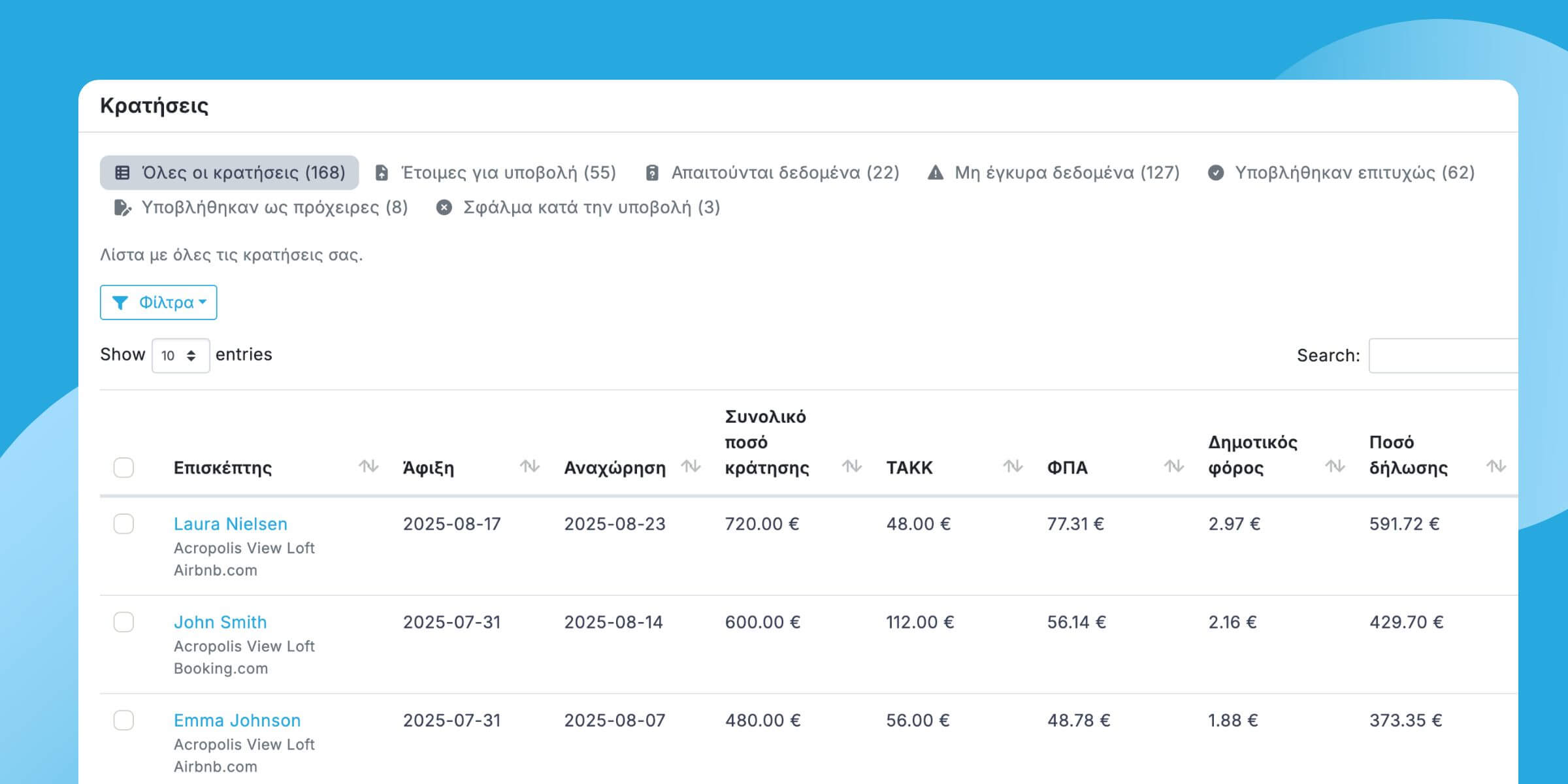 2) Δήλωση κρατήσεων στην ΑΑΔΕ, χωρίς άγχος
